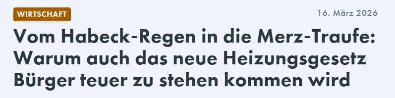 Die folgende Bundes­re­gie­rung unter Bundes­kanz­ler Fried­rich Merz hat sich in der Rheto­rik sehr stark von den Habeck’schen Ideen distan­ziert. Die kühle Witte­rung und die anste­hende Novelle des Geset­zes geben Anlass, auf Verbes­se­run­gen zu hoffen. Der aktuelle Gesetz­ent­wurf leider weniger, wie Dr. Chris­toph Canne am 16. März 2026 in einem Gastbei­trag für das Nachrich­ten­por­tal nius erläuterte: