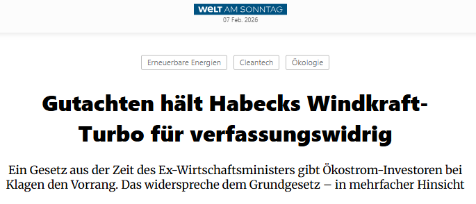 Neben der bereits Ende des letzten Jahrtau­sends einge­führ­ten Preis- und Abnah­me­ga­ran­tie wurden in den letzten Jahren verschie­dene recht­li­che Regelun­gen geschaf­fen, die zwangs­läu­fige Konflikte mit dem Arten­schutz (und anderen wichti­gen Zielen) zuguns­ten der politisch wohlge­lit­te­nen Windkraft-Indus­trie auflö­sen. Bereits im Jahr 2020 sollte der Windkraft per Gesetz eine Relevanz für die öffent­li­che Sicher­heit zugeschrie­ben werden. Seiner­zeit wurde dies richti­ger­weise als Treppen­witz erkannt und verwor­fen – hierfür dürfte auch eine mögli­che Kolli­sion mit EU-Recht relevant gewesen sein.